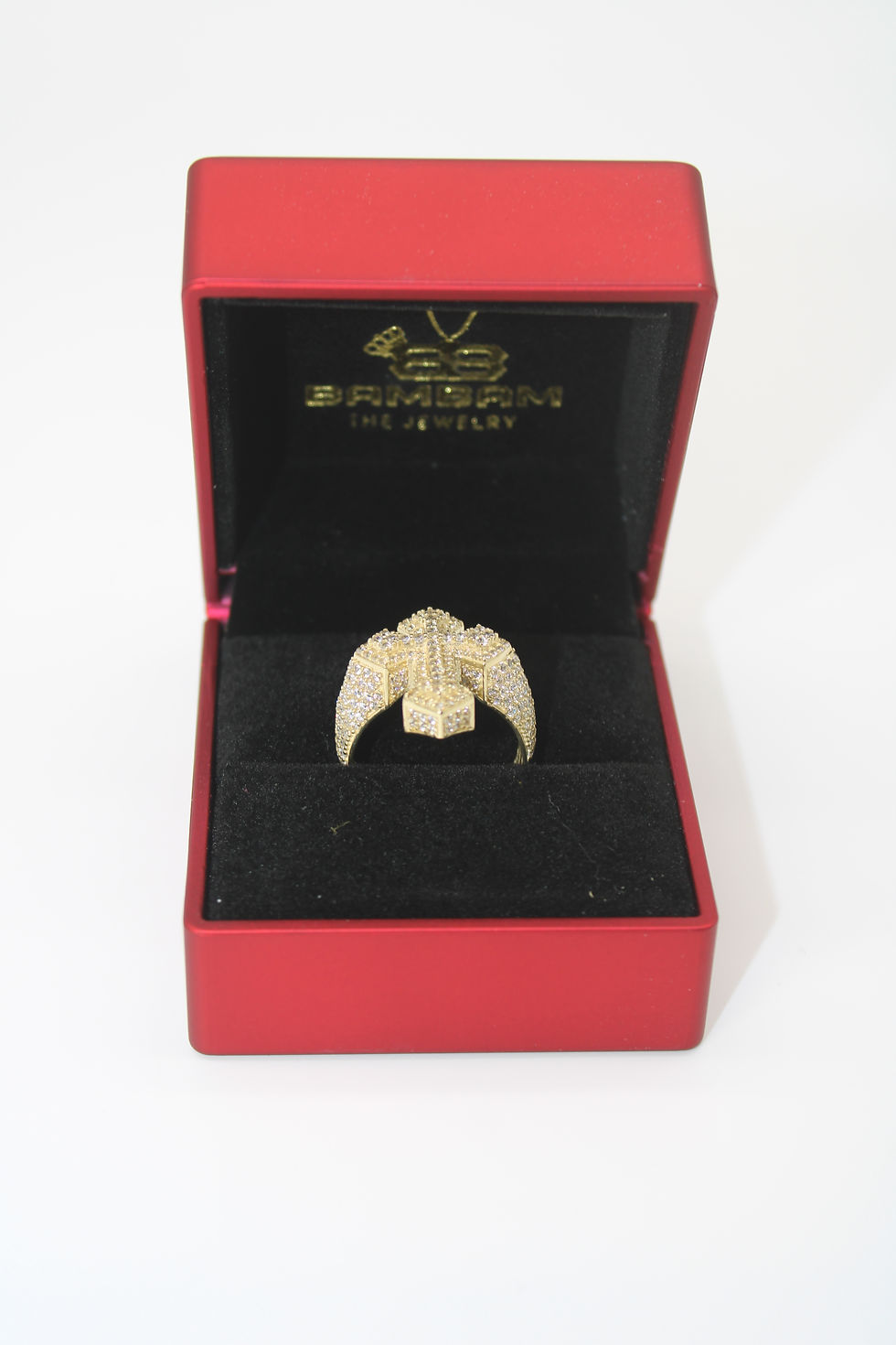 14K Fancy Tiny Cross Men Ring Cz -BTJ™